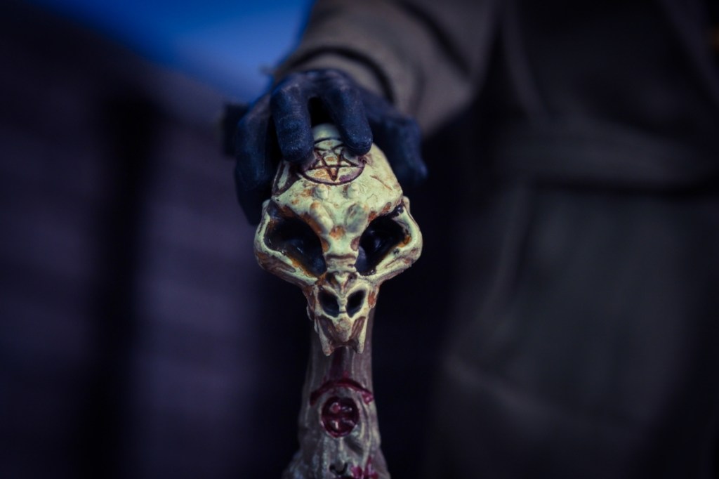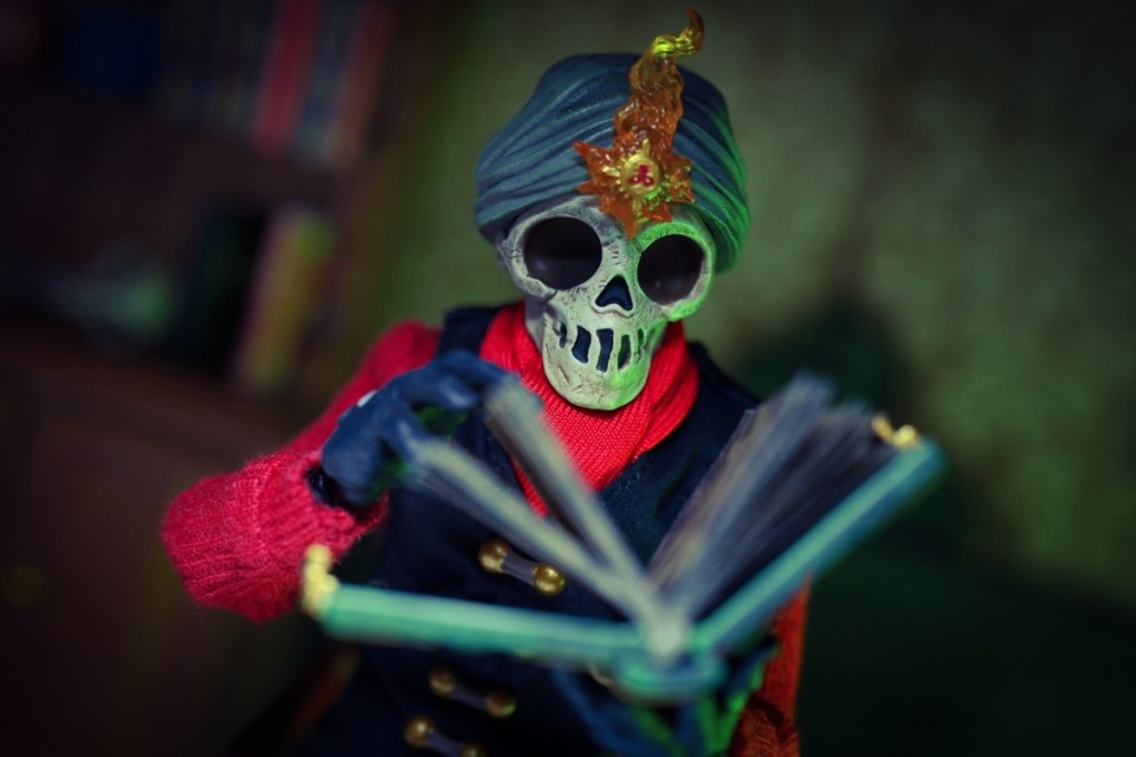 My favourite accessory is his grimoire which has real pages with some creepy imagery.
