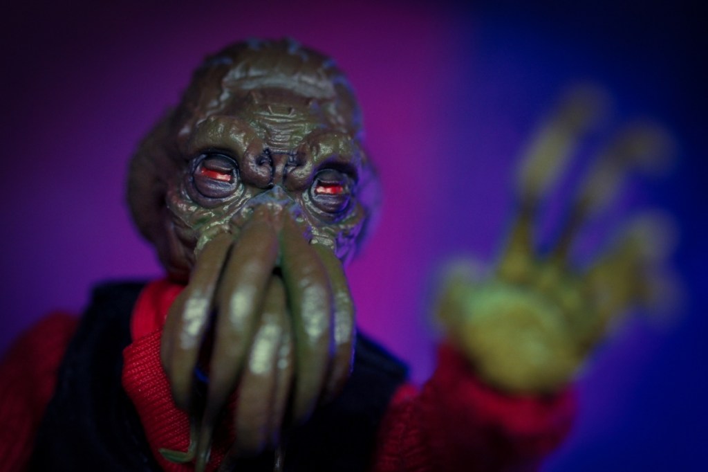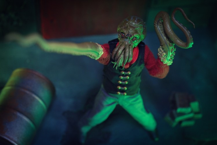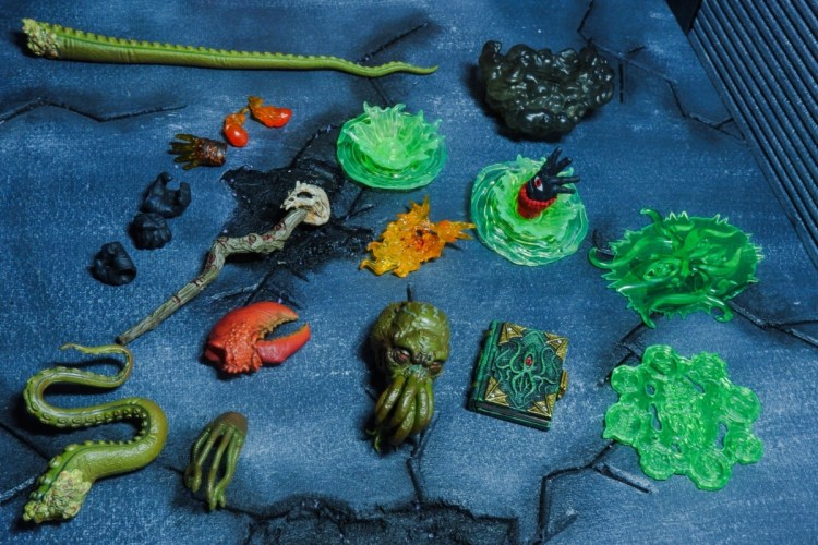 Several hands are included on top of usual fists, open hands and holding hands including a lobster claw, snake fingers and a bendy tentacle. lots of great options especially when paired with his Cthulhu like second head sculpt.