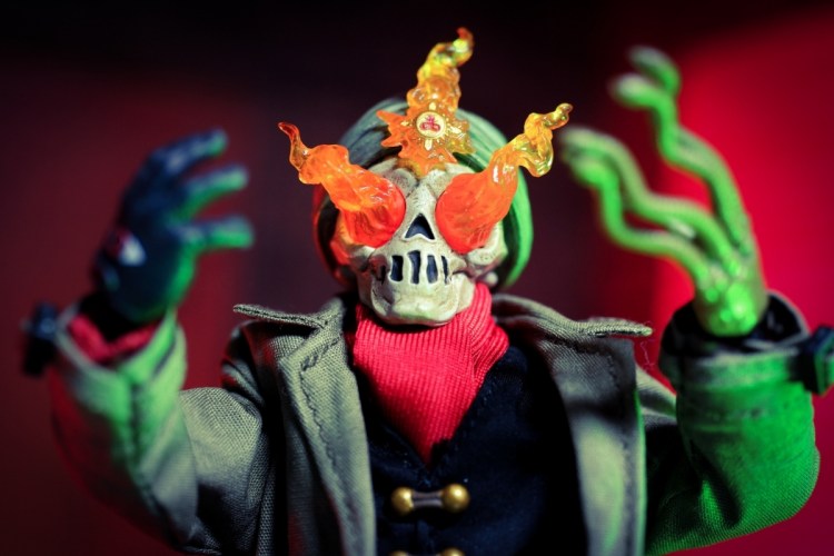Atticus Doom certainly fits his billing of occult detective, though most of his accessories tip the scales more to the side of sorcerer than private eye. Perhaps a magnifying glass or notebook would have been a nice addition! Regardless, the accessories are abundant, awesome and even a little absurd