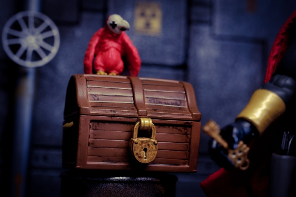 Furthermore, the figure’s multitude of accessories provides ample opportunities for storytelling. The treasure chest can be opened to reveal hidden riches, while the parrot, with its two versions—one with wings by its side and the other with wings spread in flight—can add a dynamic element to photos.