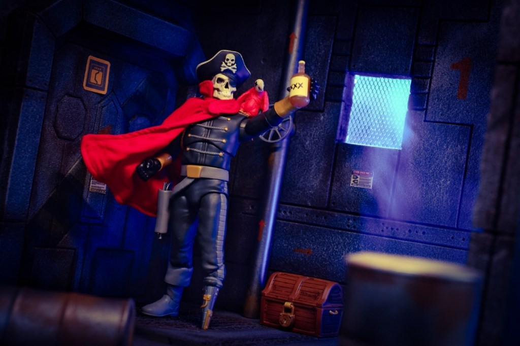 One aspect that truly shines with Captain Deadstar is his potential as a subject for toy photography. His striking looks, including the skull head, metallic prosthetic leg, and intricate details, make him a standout figure in any composition.