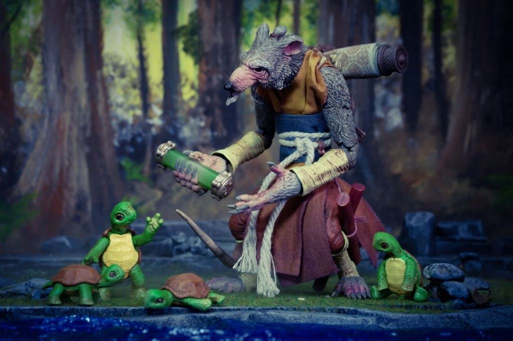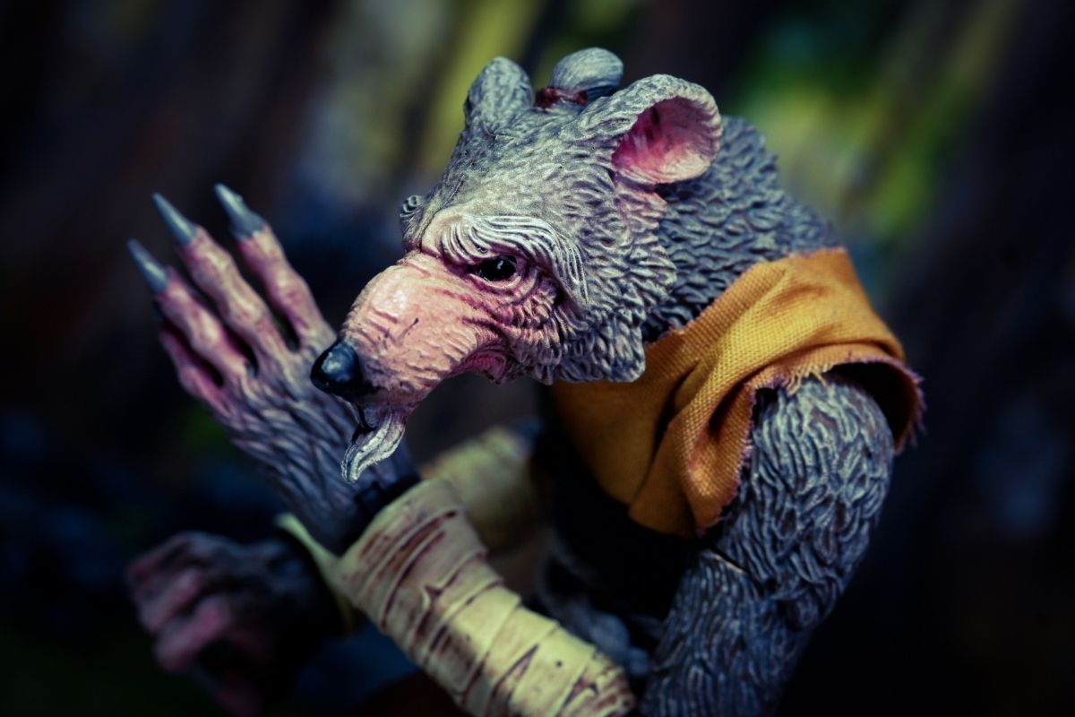 Master comes adorned in robes made with soft goods that give him a real premium feel. His bamboo styled swordsman hat and shoulder pauldrons combine with the robes to really make this figure stand out and feel sort of authentic. Well as authentic as a mutant ninja rat based on Asian martial arts stereotypes can be.