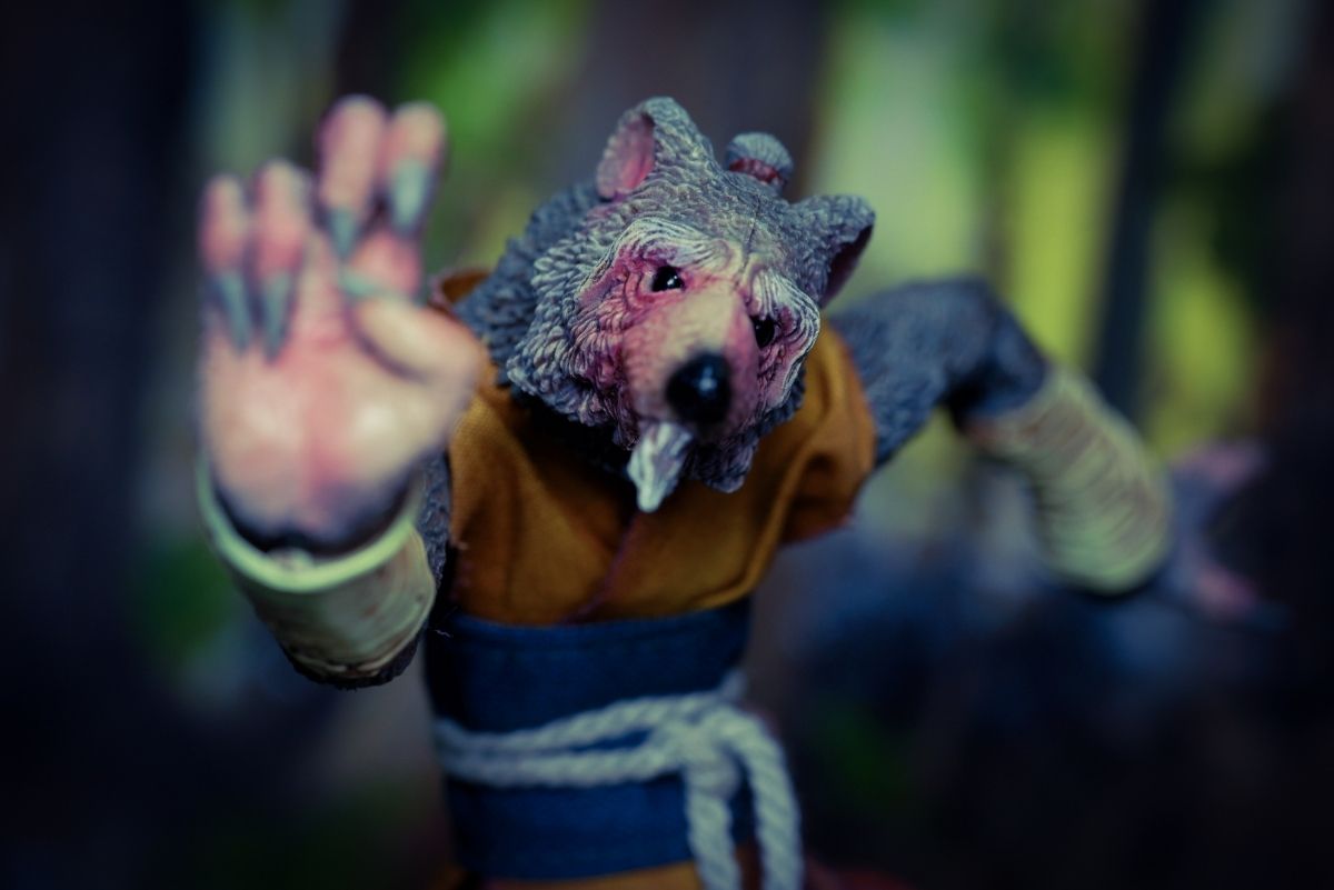 Articulation wise splinter has his ups and downs (pun not intended). Arms are double jointed and give just enough motion. the knee (well strangely it’s his shin but somehow still looks good) is single jointed and the feet have a small range of motion on a ball joint. I’d have liked more from the feet but appreciate everything else is as good as you can get without harming the aesthetic of the rats legs.