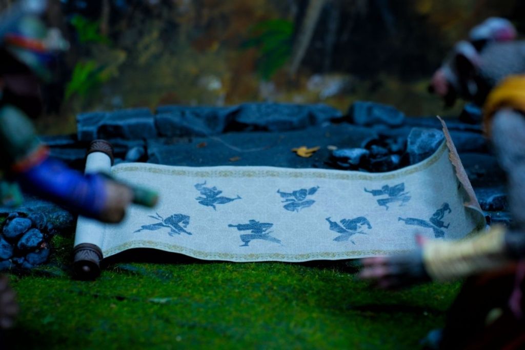 The scroll is made of a slightly cloth like material and looks great. The martial arts poses reminded me of pages from Splinters journal in The Last Ronin: Lost Years series from IDW.