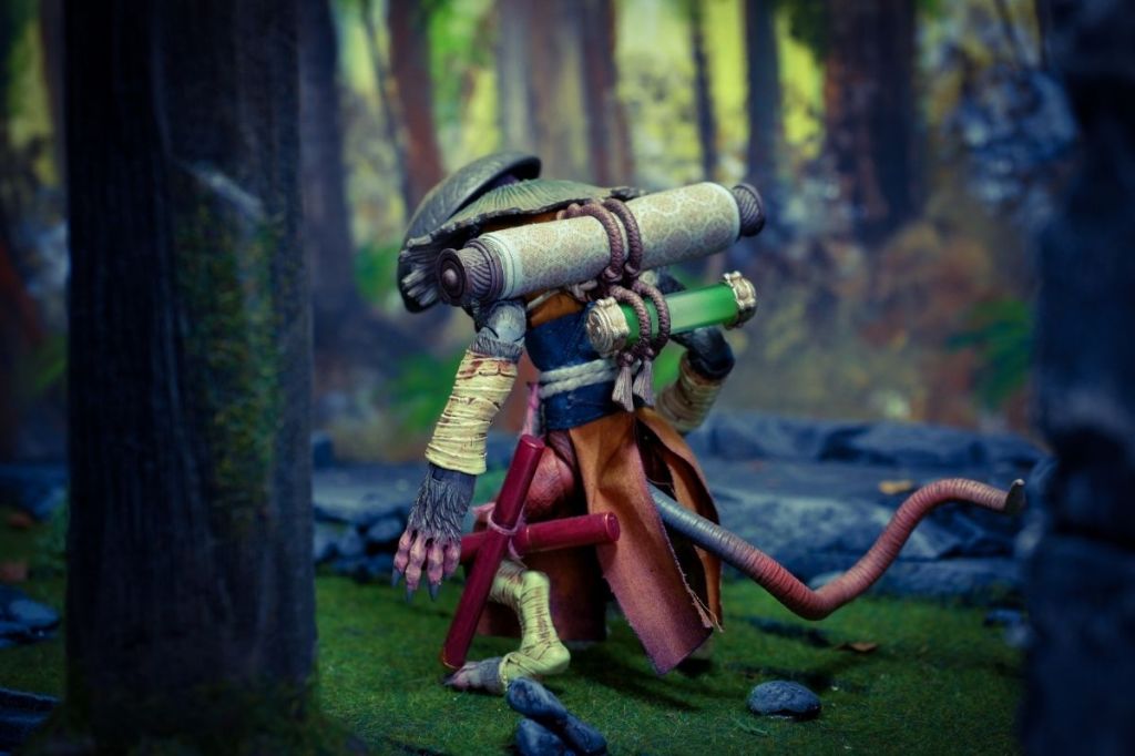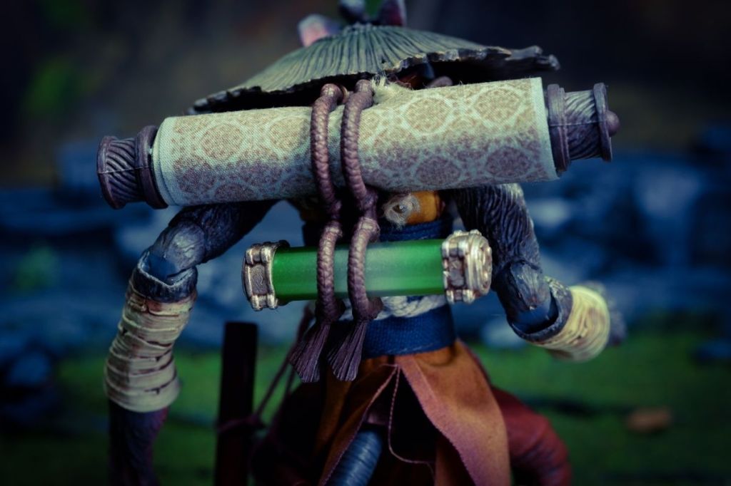 Accessories wise, the wise sensei comes with 7 hands, a cane, twin blades, a scroll, a canister, a backpack and… his tail. I’m counting his tail as it comes separated in the box and I had to attach it. I found this tricky and had to apply heat. Once I got it in I found it didn’t quite stay in as well as I would have liked. Not a big issue though and the fact it is fully bendy is nice for posing.