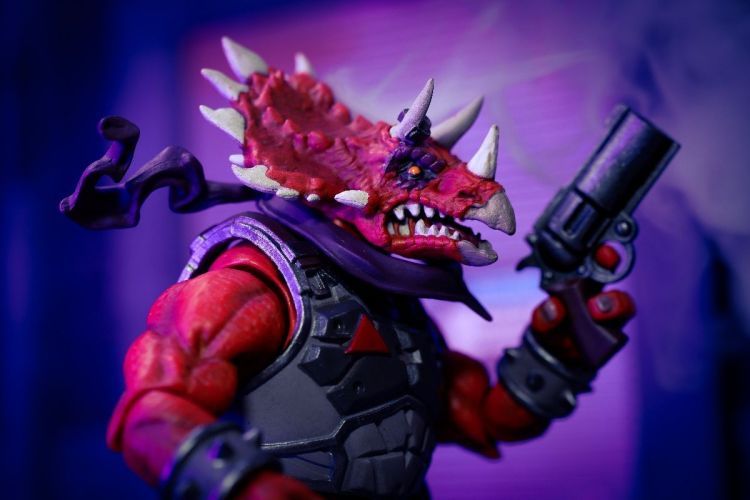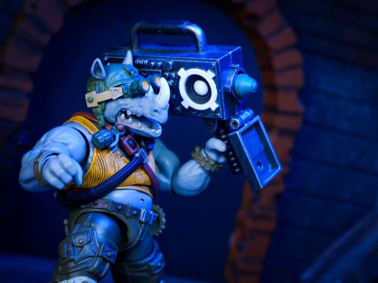 Accessories are plentiful: multiple hands, weapons, and character-specific extras. The turtles all come with skateboards, Donatello has a wrench and tool bag, and the Triceraton even includes weights to keep his dino physique in fighting shape.